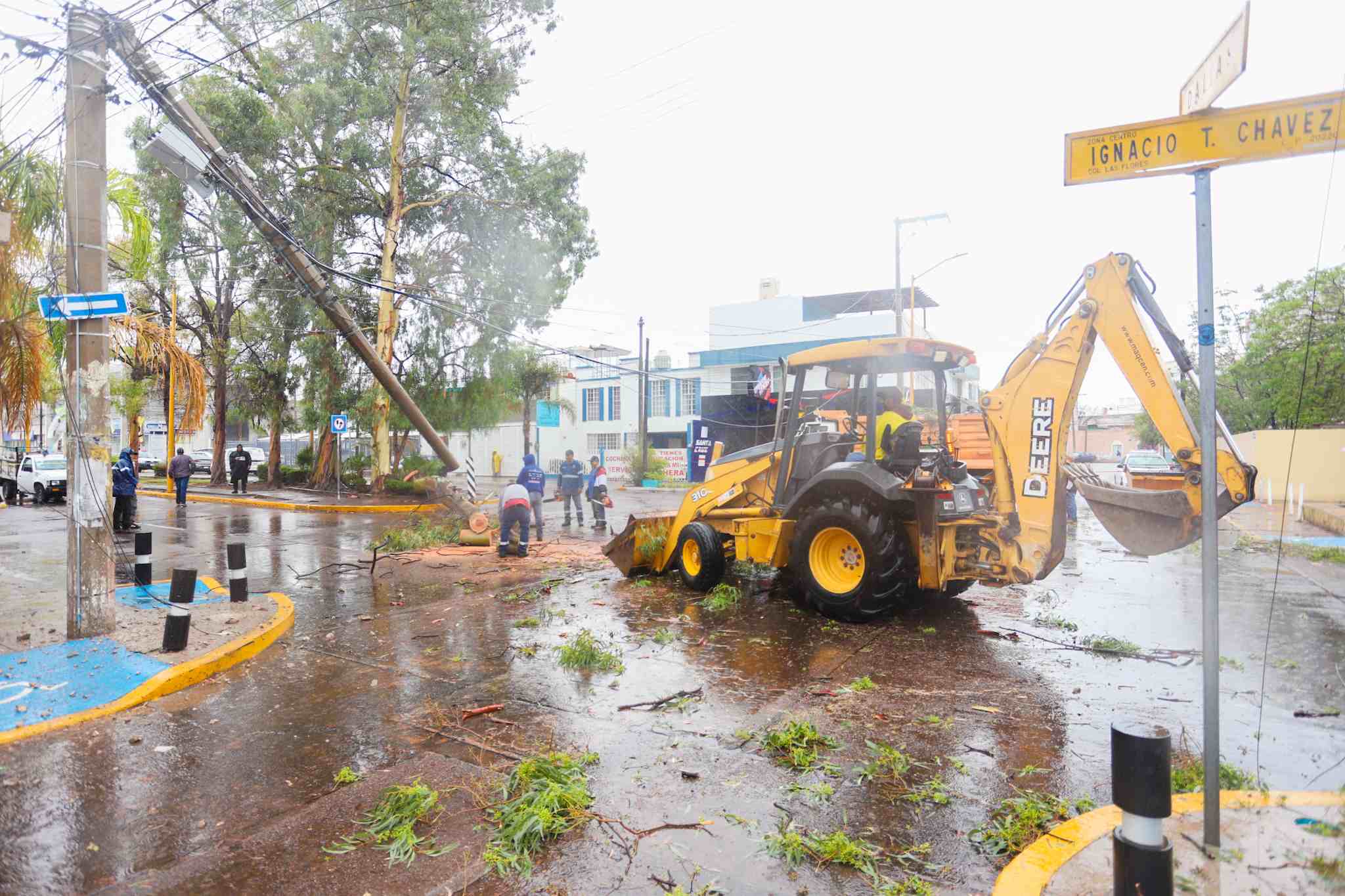 Al trasladarse al par vial Gabriela Mistral y a otros puntos como La Estación y la colonia Las Flores, el titular de la Coordinación Municipal de Protección Civil, José Gabino Vázquez Vega, dio a conocer que se trabaja de la mano con Servicios Públicos a través de las Direcciones de Alumbrado Público y Parques y Jardines, con la atención a cables, árboles y postes caídos o en situación de riesgo derivados de las fuertes ráfagas de viento presentadas el miércoles por la tarde y noche.