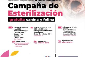 El Municipio de Aguascalientes en conjunto con la Secretaría de Salud del Estado de Aguascalientes (ISSEA), refuerzan la campaña de esterilización gratuita canina y felina, las cuales se llevarán en distintas sedes en la última semana de junio.