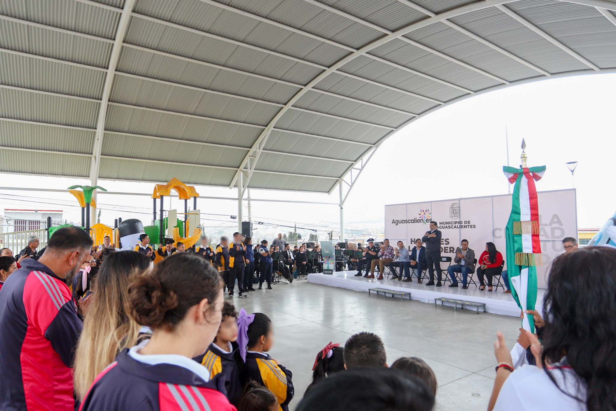 En el Centro de Atención Múltiple XX ubicado en el fraccionamiento Villas de Nuestra Señora de la Asunción, el presidente municipal, Leo Montañez, rindió honores a la bandera y reconoció a los alumnos por su entusiasmo, y al personal docente y administrativo por el humanismo, entrega y empatía con la que día a día guían a estas niñas y niños.