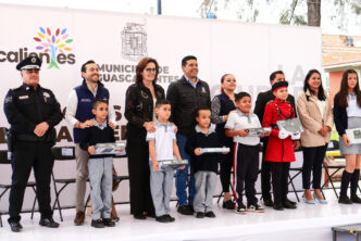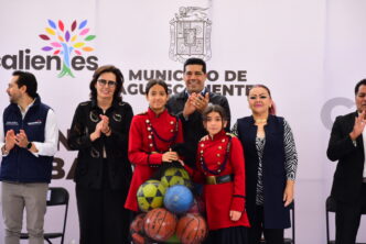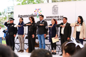 Por su parte, estudiantes integrantes de la escolta recibieron los apoyos deportivos que otorga el Municipio de Aguascalientes a las escuelas, para que los alumnos continúen desarrollando sus habilidades físicas y de trabajo en equipo.