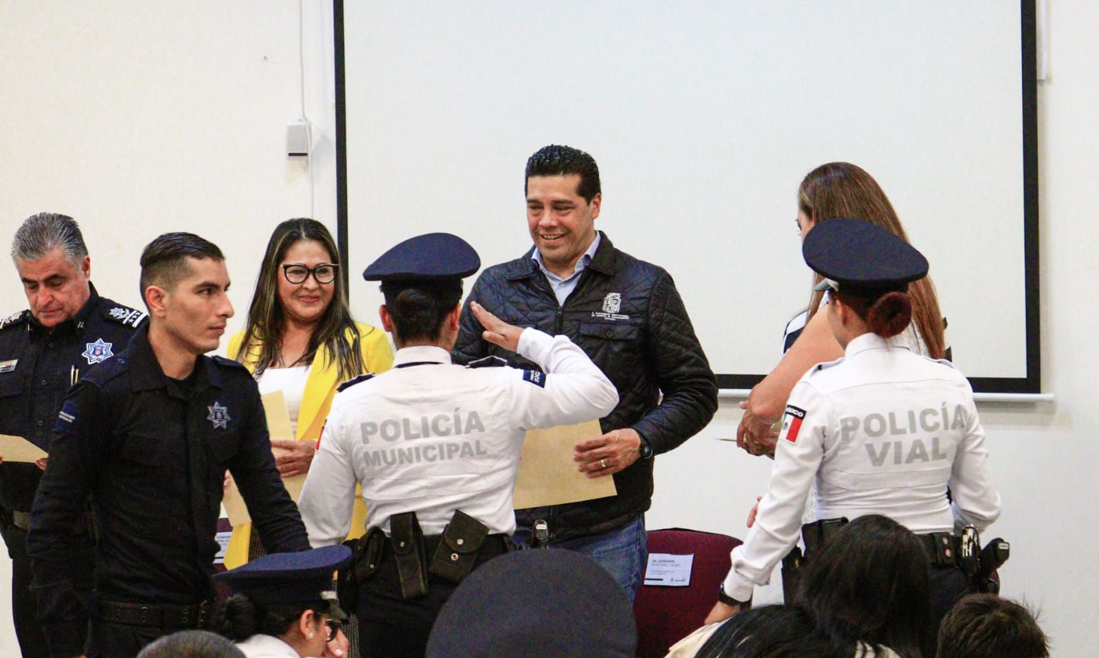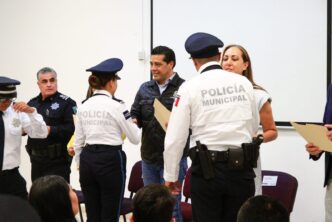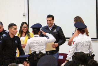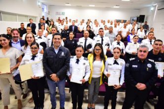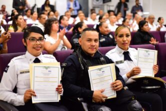 En el marco de la entrega de certificados de bachillerato a personal operativo y administrativo de la Secretaría de Seguridad Pública del Municipio de Aguascalientes (SSPM), el presidente municipal, Leo Montañez, enfatizó que a través de estas acciones de profesionalización se brinda un mejor servicio a la ciudadanía.
