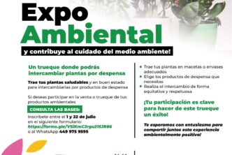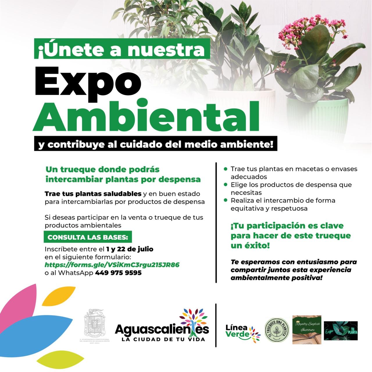 El Instituto de Convivencia y Desarrollo Línea Verde del Municipio de Aguascalientes invita a participar en la Expo Ambiental que se llevará a cabo el domingo 28 de julio, de las 10:00 a las 18:00 horas, en la cual se realizarán diferentes actividades a favor de la conservación de recursos naturales y sostenibilidad.