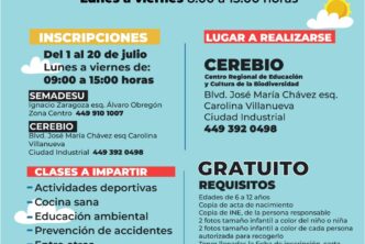 Las inscripciones ya están abiertas y cierran el 20 de julio, las personas interesadas pueden comunicarse al teléfono 449 392 04 98 para mayores informes o acudir a las instalaciones del CEREBIO de 9:00 a 15:00 horas de lunes a viernes.