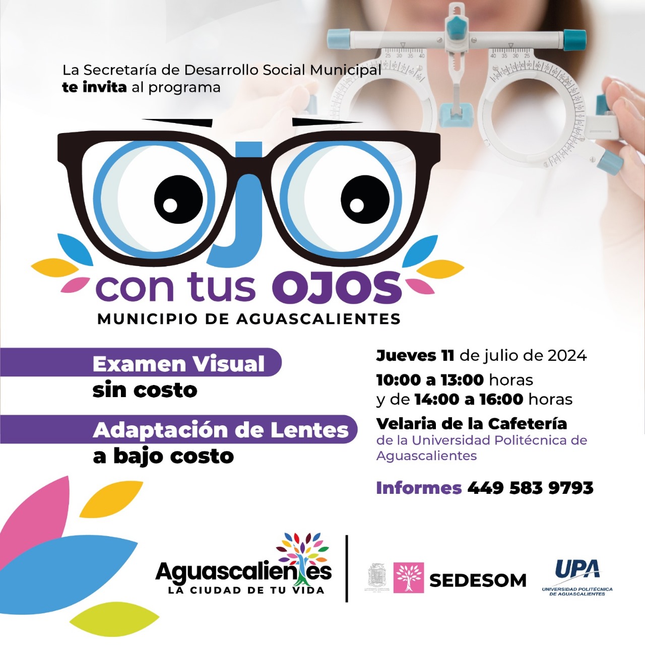 La Secretaría de Desarrollo Social Municipal (Sedesom) comprometida con la salud visual de la población continúa con el programa Ojo con tus Ojos, a través del cual se realizan exámenes de la vista totalmente gratis y lentes graduados a costos más bajos y accesibles para todos los bolsillos.