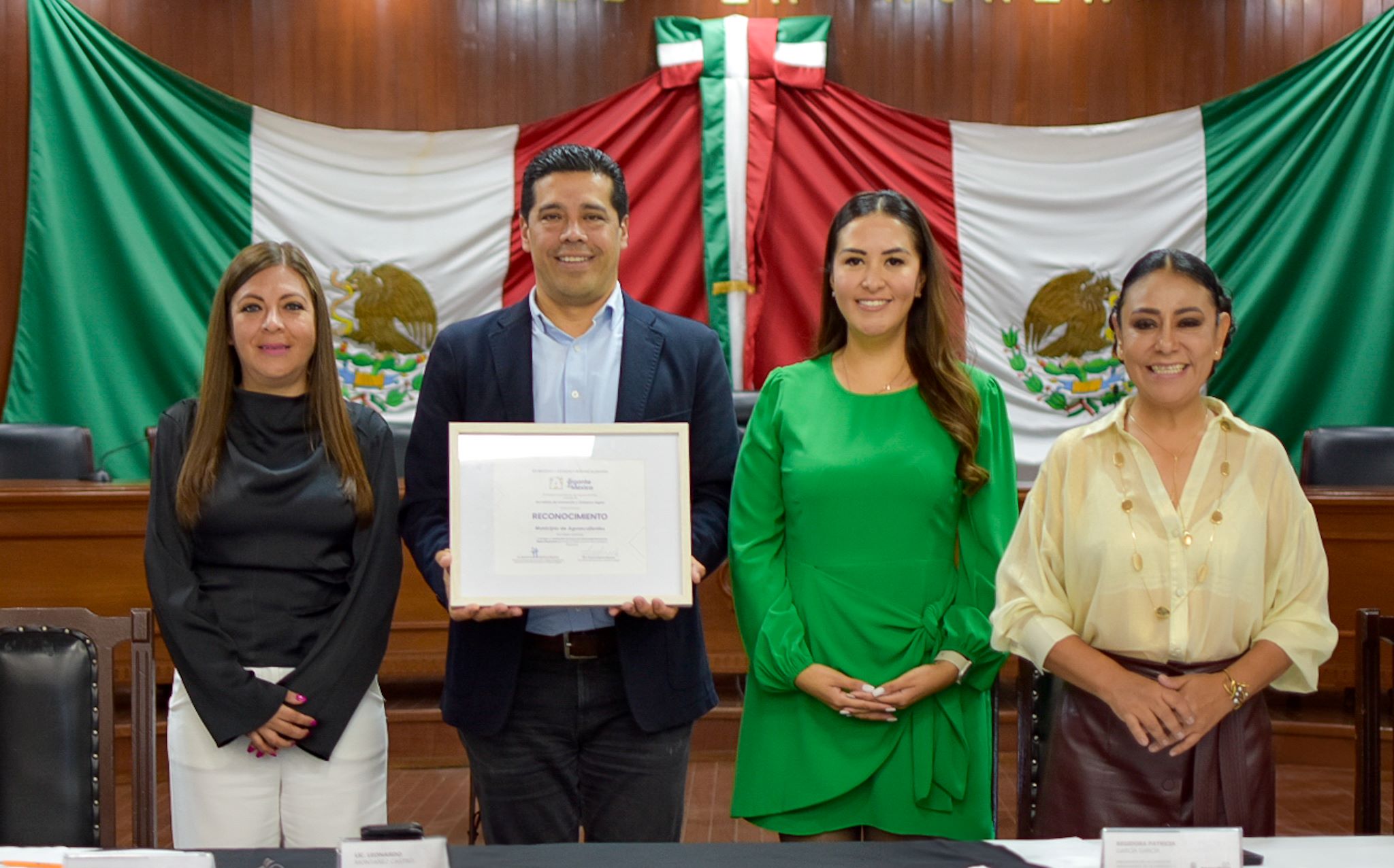 El presidente municipal Leo Montañez, recibió el reconocimiento que distingue al Municipio de Aguascalientes por mantenerse en el Primer Lugar Nacional en Mejora Regulatoria, actividad mediante la cual se digitalizan, simplifican y agilizan trámites y servicios del Municipio, para que la ciudadanía pueda realizarnos en menos tiempo.
