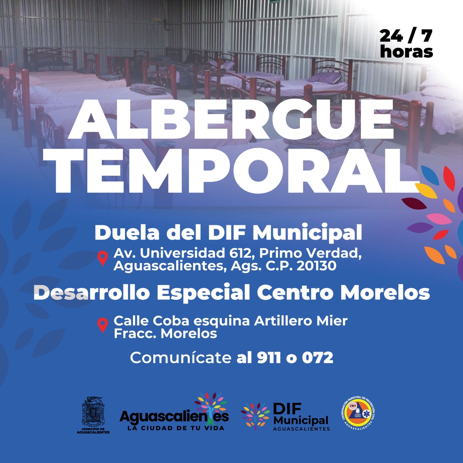 Asimismo, se le recuerda a la población que también está habilitado el albergue Desarrollo Especial Centro Morelos, ubicado en la calle Coba esquina Artillero Mier en el fraccionamiento Morelos.