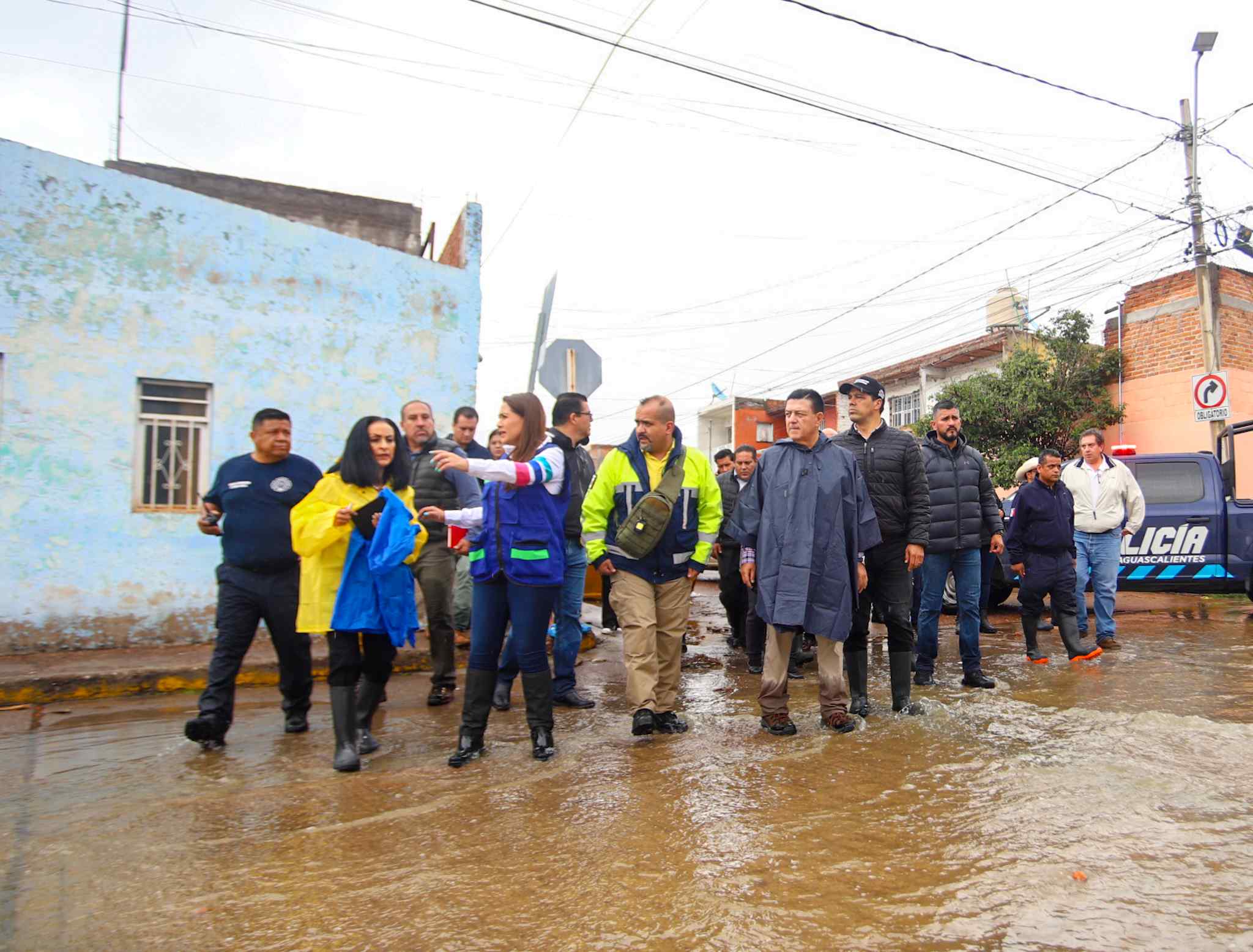 La gobernadora de Aguascalientes, Tere Jiménez, y el presidente municipal  de la capital, Leo Montañez, realizaron un recorrido por las colonias que resultaron más afectadas por las lluvias que se registraron en las últimas horas en la ciudad, a fin de brindar el auxilio correspondiente a las familias que se vieron perjudicadas.