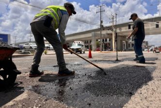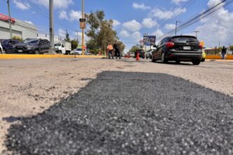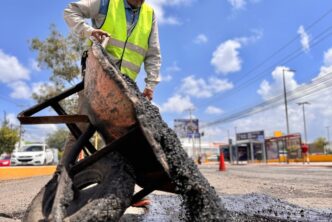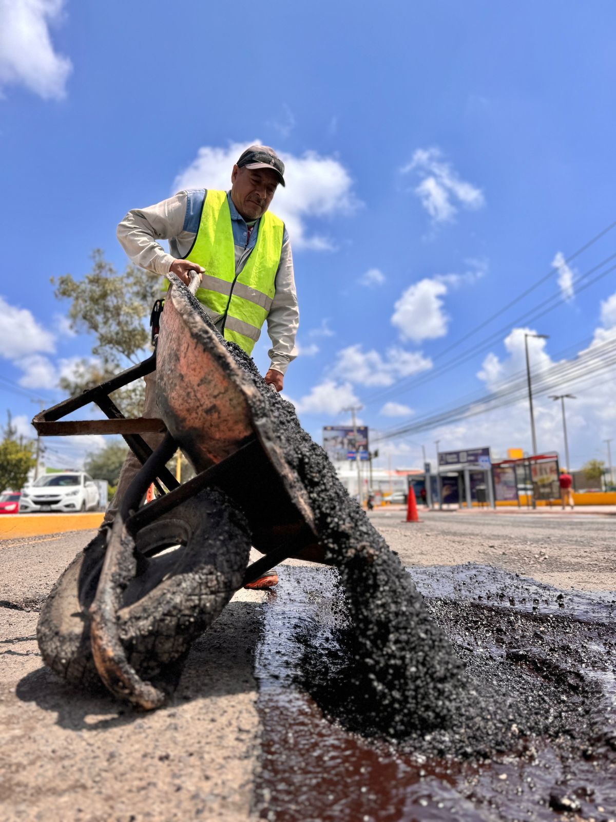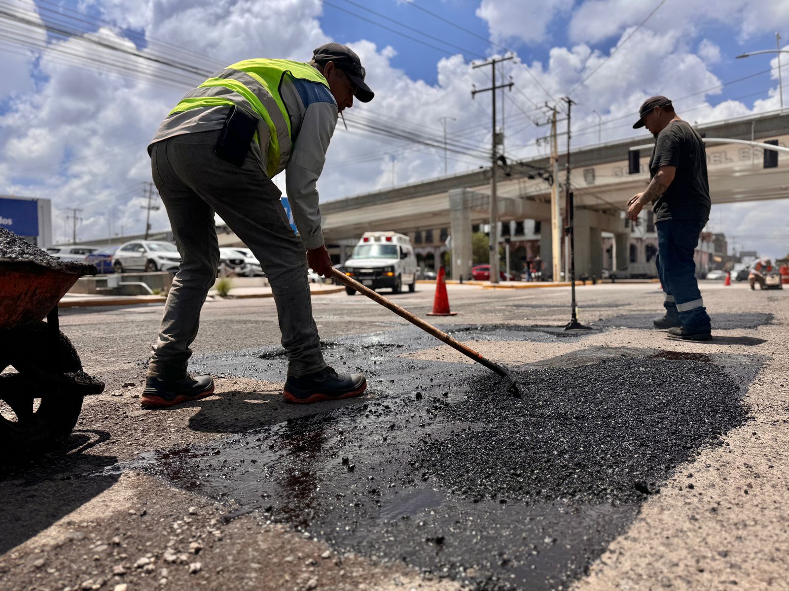 Aunado a estas acciones, cuadrillas de trabajadores de la Secretaría de Obras Públicas, realizan tareas de bacheo en diversos puntos como la Av. Independencia al norte de la ciudad, frente a una tienda departamental.