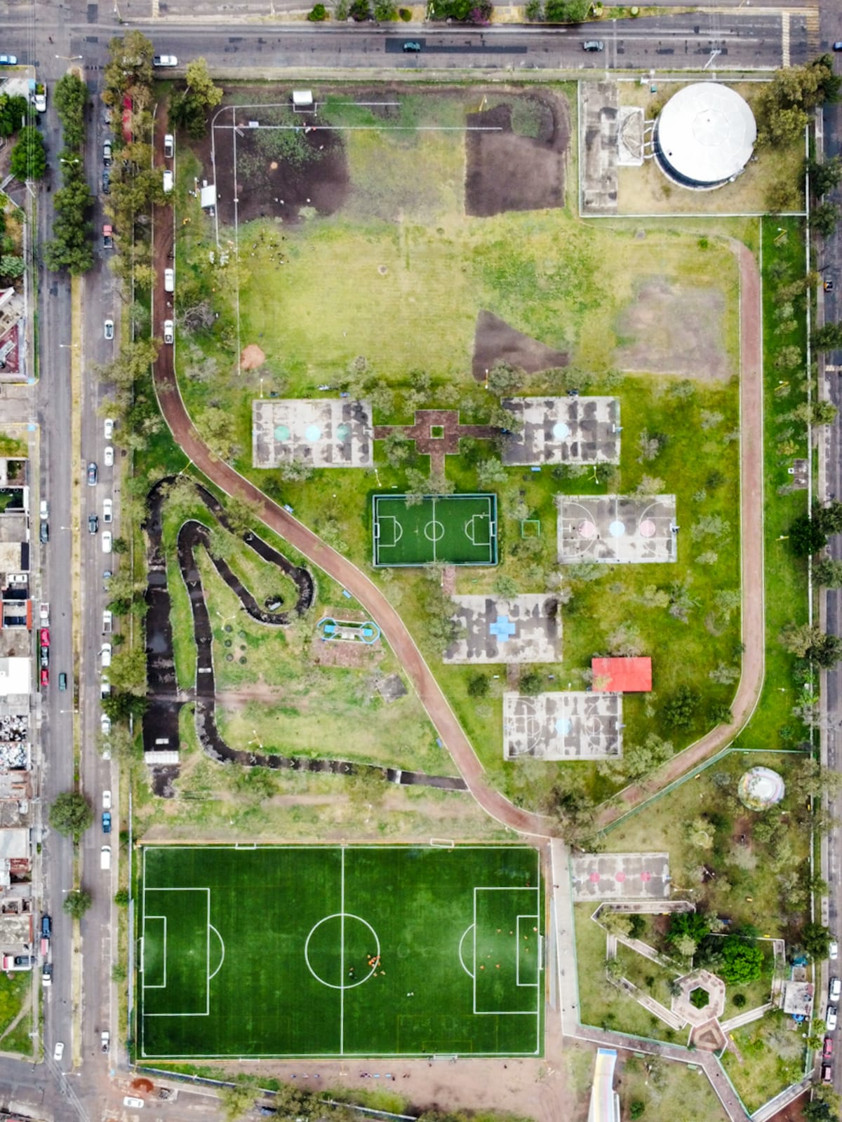Esta nueva cancha será la primera de pasto sintético pública para que los aficionados al rey de los deportes practiquen de manera profesional en emocionantes partidos y amplía las opciones para realizar actividades recreativas sumándose a la cancha de futbol de pasto sintético y la pista para BMX ubicadas en este parque.