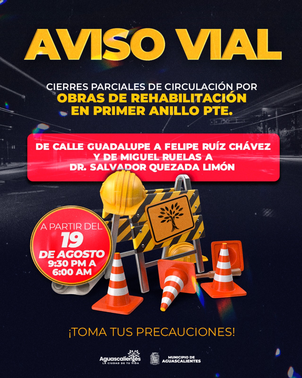 El secretario de Obras Públicas del Municipio de Aguascalientes, Miguel Ángel Huízar Botello, explicó que en este proyecto se ejercerá una inversión superior a los 12 millones de pesos y los trabajos se llevarán a cabo mediante cierres parciales por carriles en cada sentido de circulación, de las 21:30 a las 6:00 horas, con el fin de interrumpir lo menos posible el tránsito vehicular.