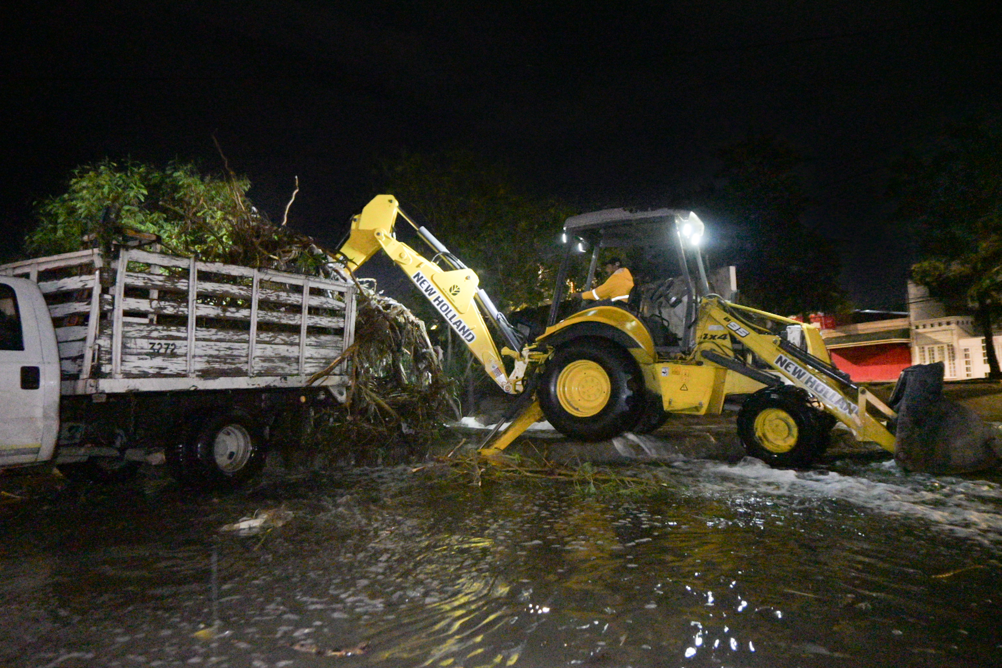 Por su parte, la Coordinación de Protección Civil Municipal, Bomberos, así como personal de Parques y Jardines, llevaron a cabo trabajos de limpieza con maquinaria pesada en el canal de la Col. Estrella, para el retiro de maleza y desechos de arrastre por las intensas lluvias.