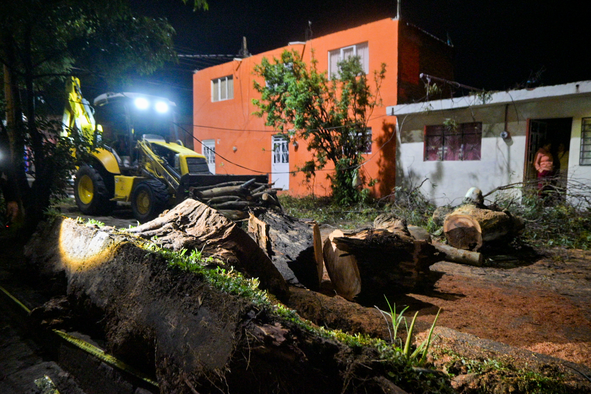 Leo Montañez supervisó los trabajos de retiro de un árbol caído en la calle Mariano Azuela en el fraccionamiento Insurgentes, que dejó daños materiales en una vivienda y un auto particular; en total se reportaron 10 árboles caídos a consecuencia de los fuertes vientos y la intensa lluvia.
