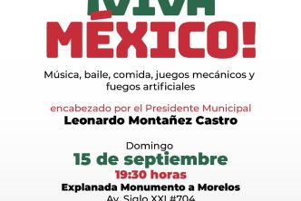 El Municipio de Aguascalientes invita a las familias de Aguascalientes a celebrar el tradicional «Grito de Independencia» en la Delegación Morelos con una fiesta donde habrá música en vivo, antojitos mexicanos, juegos mecánicos y fuegos artificiales.