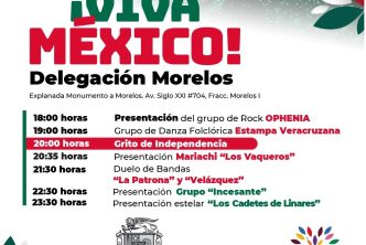 El delegado de Morelos, Juan Manuel Jáuregui Cruz, aseguró que los festejos patrios incluyen presentaciones en vivo de grupos musicales, guerra de bandas, Banda Velázquez, Banda La Patrona, Grupo Incesante y Cadetes de Linares; bailes folclóricos, mariachi y fuegos artificiales, así como diferentes atracciones que podrán disfrutar los asistentes como juegos mecánicos para niños y jóvenes y antojitos mexicanos.