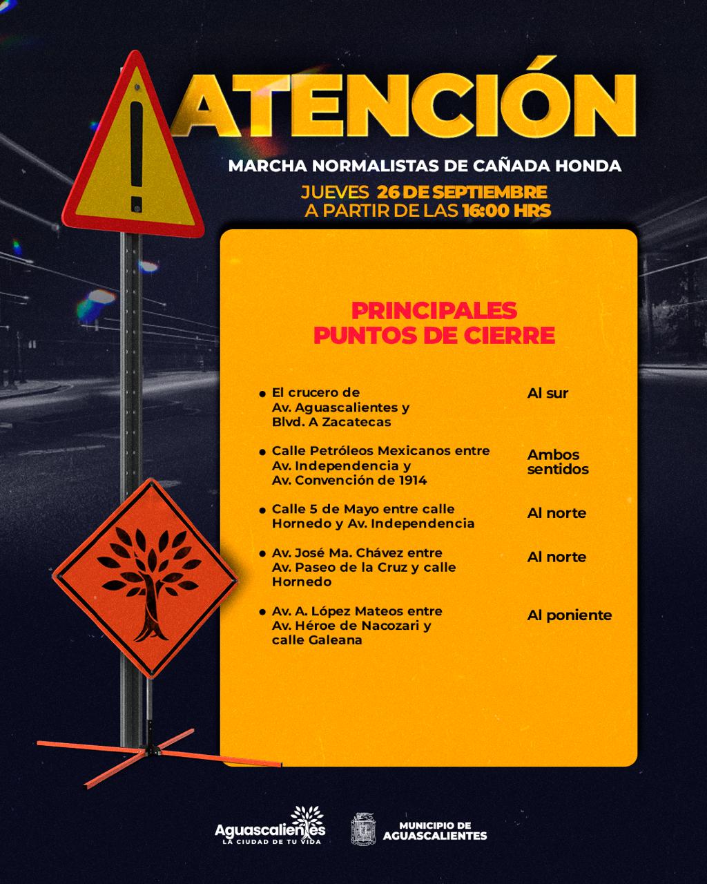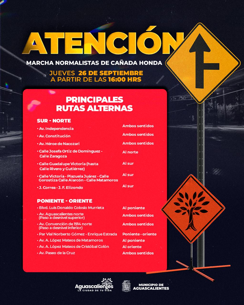 La Secretaría de Seguridad Pública Municipal de Aguascalientes (SSPM), a través de la Dirección de Policía Preventiva y la Dirección de Movilidad dispondrán de un operativo de seguridad y vialidad con motivo de la marcha que realizarán este jueves 26 de septiembre estudiantes de la Escuela Normal Rural Justo Sierra Méndez, de Cañada Honda.