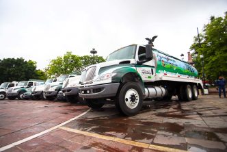 Como parte de las acciones sobresalientes del Tercer Informe de Actividades del presidente municipal, Leo Montañez, se da a conocer que con una inversión de 270 millones de pesos se renovó cerca del 70 por ciento de la maquinaria de la Secretaría de Servicios Públicos.