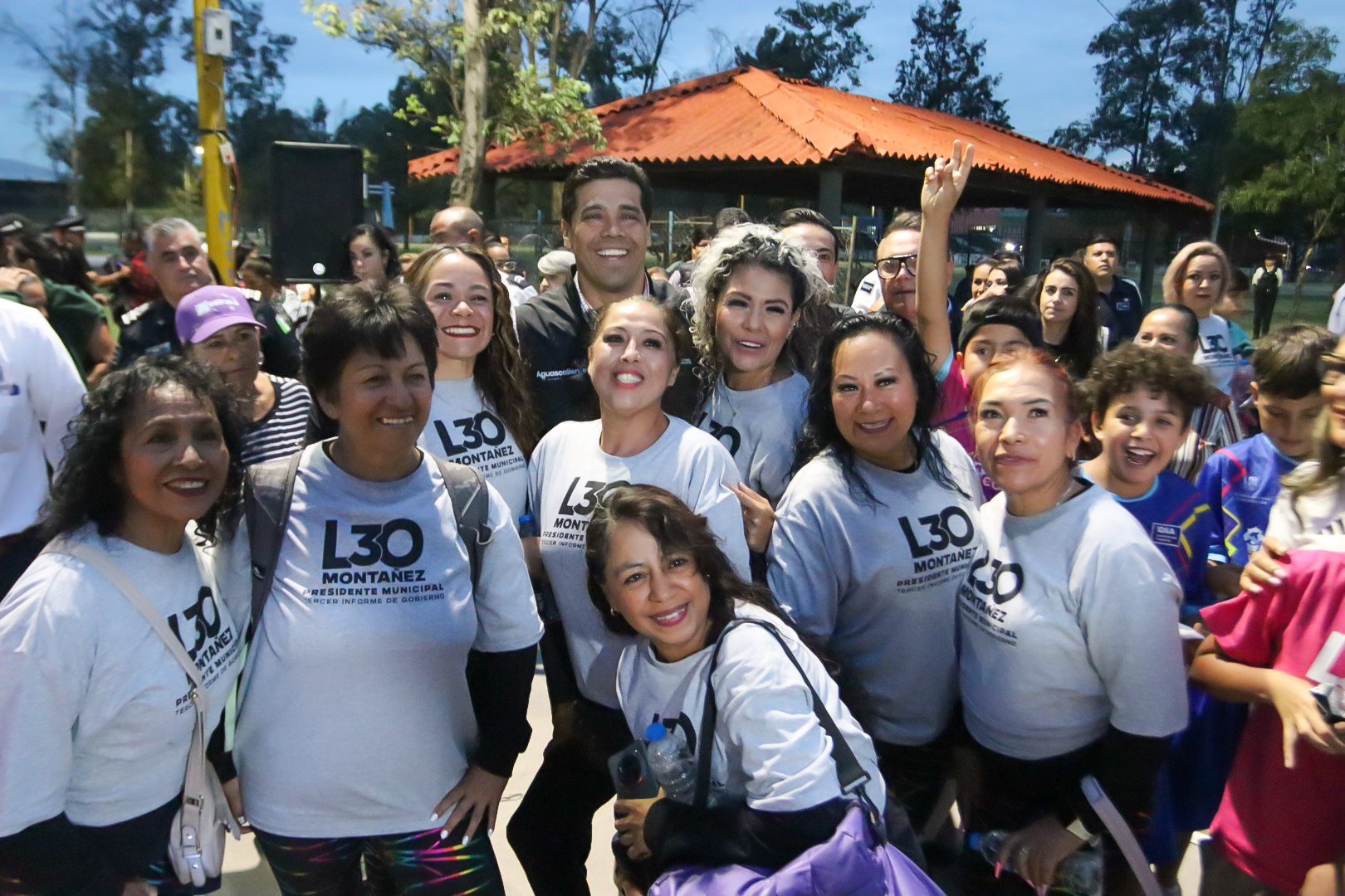 Con una feria del deporte en las instalaciones del Parque Azul, ubicado en la colonia Insurgentes, el presidente municipal, Leo Montañez presentó su Informe de Actividades a vecinos de la zona y personas que a diario acuden a este lugar a realizar actividades deportivas como voleibol, básquet, fútbol y más.