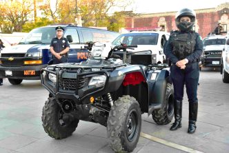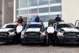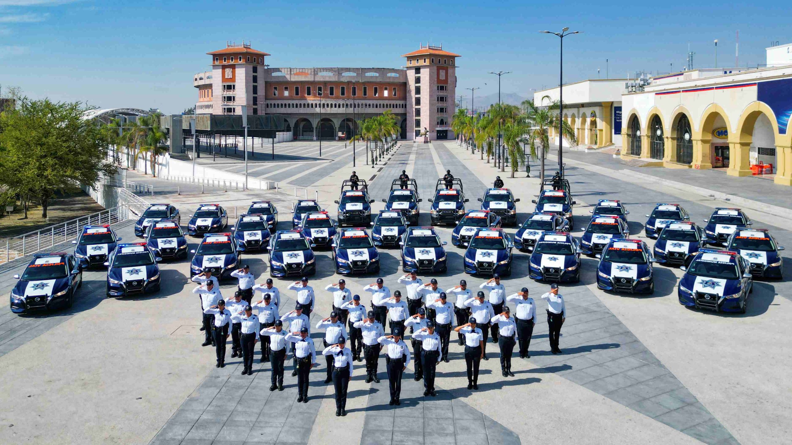 En el marco del Tercer Informe de Actividades, el presidente municipal, Leo Montañez, informó que se adquirieron más de 100 nuevas unidades, entre patrullas, cuatrimotos, grúas, uniformes, armas y cámaras de solapa, para que los policías puedan realizar de una mejor manera el trabajo de prevención y vigilancia de las calles.