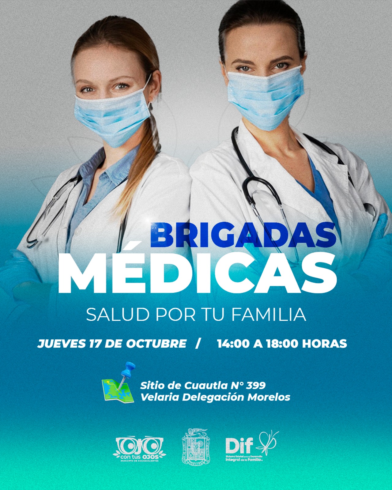 Con el fin de acercar la salud a quienes más lo necesitan, el DIF Estatal y el DIF Municipal de Aguascalientes invitan a la población a participar en la Brigada Médica gratuita que se llevará a cabo este jueves 17 de octubre en el fraccionamiento Morelos, en el sur de la ciudad capital.