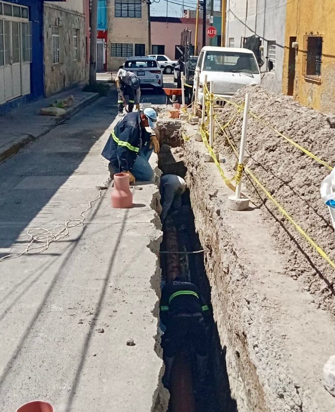 MIAA invierte aproximadamente 100 mil pesos en labores de sustitución de tubería de alcantarillado sanitario de 10 pulgadas de diámetro en la calle Marte, en el tramo que comprende de la calle Cosío a la privada Marte, en el barrio de La Purísima, con lo que se mejorará el sistema de drenaje.