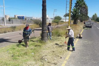 El Municipio de Aguascalientes a través de la Coordinación General de Delegaciones Urbanas y Rurales realizó un mega operativo de limpieza sobre la Carretera Internacional Aeropuerto-Aguascalientes al sur de la ciudad, con el objetivo de dar mantenimiento a espacios públicos.