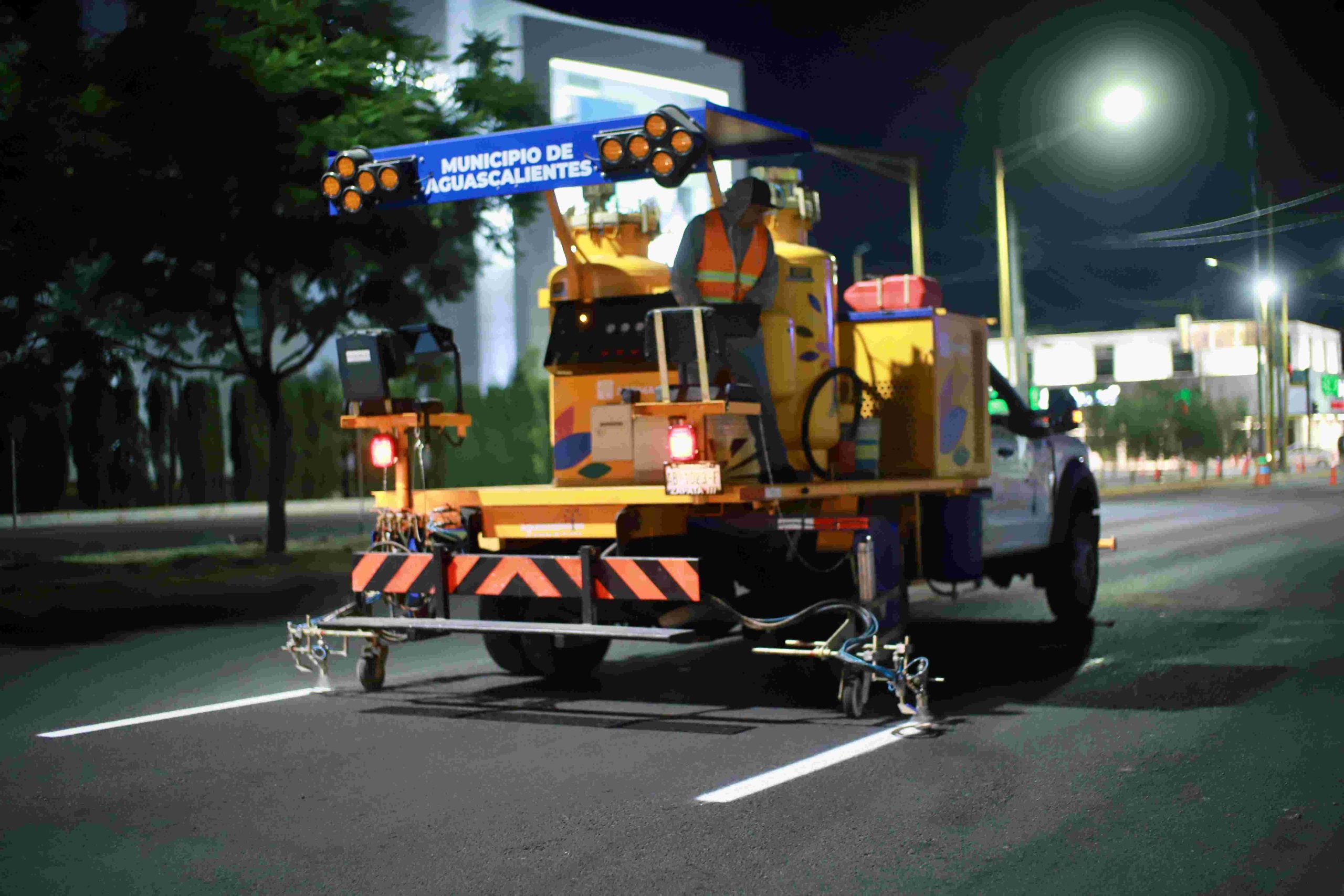 El Municipio de Aguascalientes, a través de la Secretaría de Obras Públicas, continúa con los trabajos de pintura de tráfico como parte de la rehabilitación y mantenimiento de vialidades en la ciudad, con el objetivo principal de mejorar la seguridad vial y mantener en óptimas condiciones las calles y avenidas..