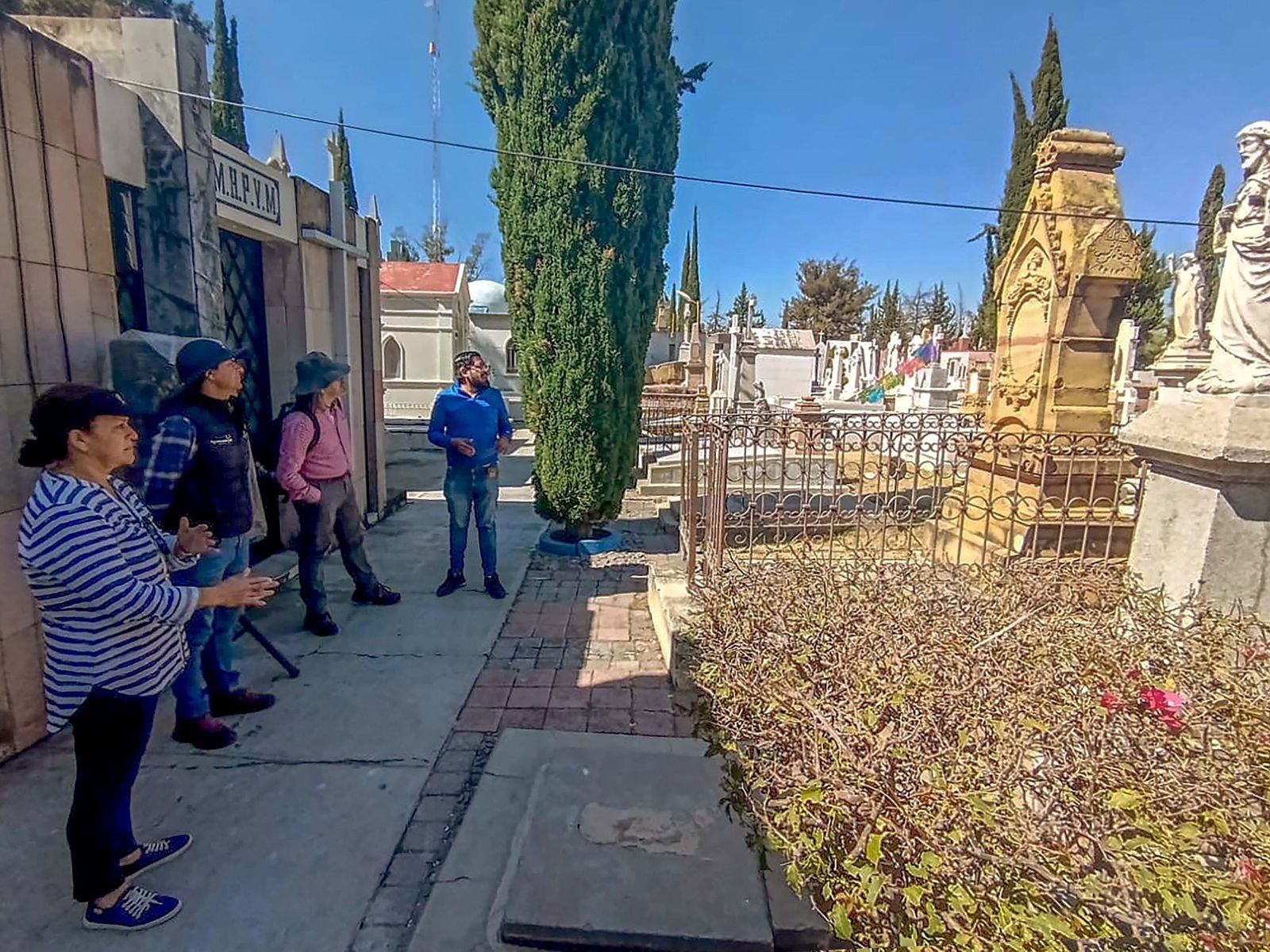 Se realizó un recorrido por estos recintos en el que participaron Teresa Rendón Olvera, restauradora del INAH, el maestro en Restauración Giovani Guerrero Ramos, presidente de la Asociación Cementerios Patrimoniales del Centro de México y el doctor en Historia Diego A. Bernal Botero, secretario permanente de la Red Iberoamericana de Valoración y Gestión de Cementerios Patrimoniales.