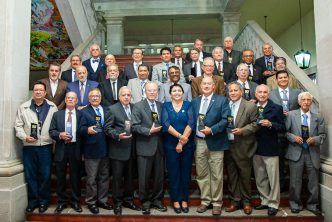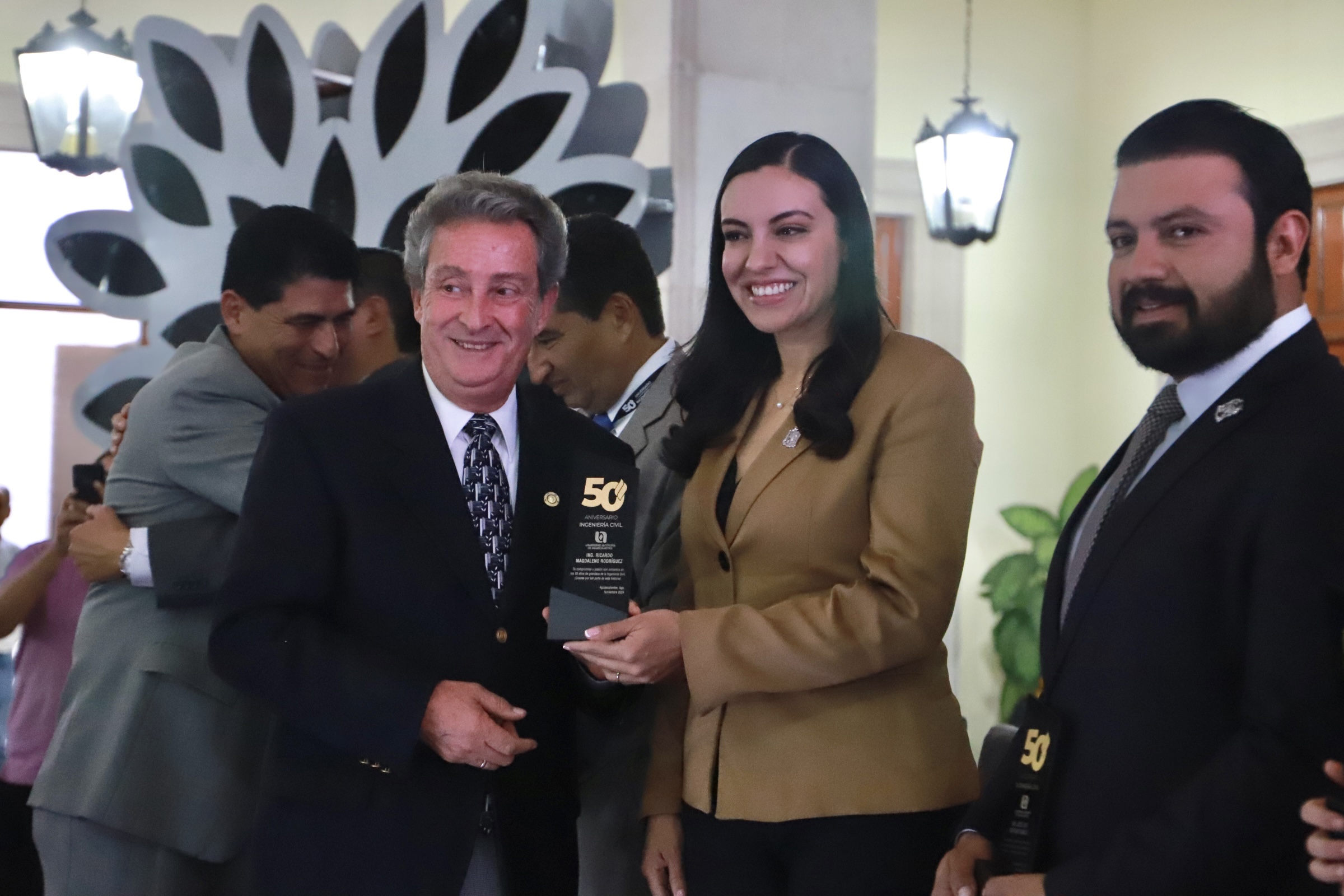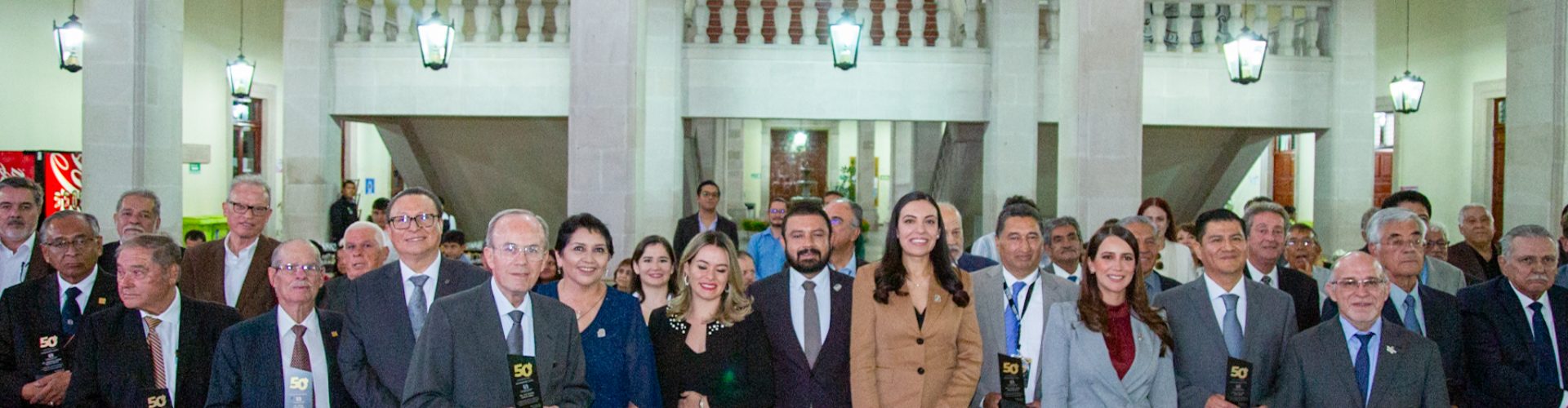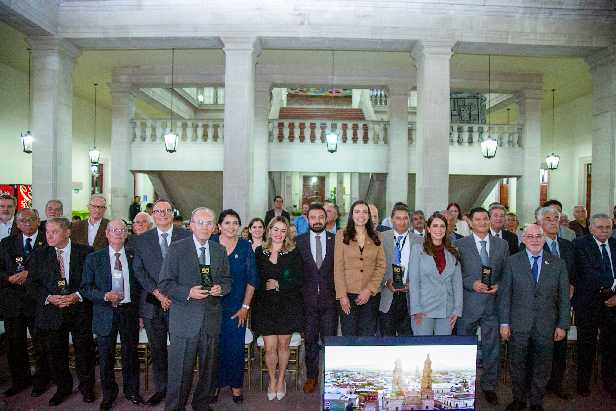En el segundo patio de Palacio Municipal se llevó a cabo la ceremonia para reconocer la trayectoria, influencia y talento de quienes han contribuido en la creación del Aguascalientes moderno, en el marco de la conmemoración del 50 aniversario de la carrera de Ingeniería Civil de la Universidad Autónoma de Aguascalientes.