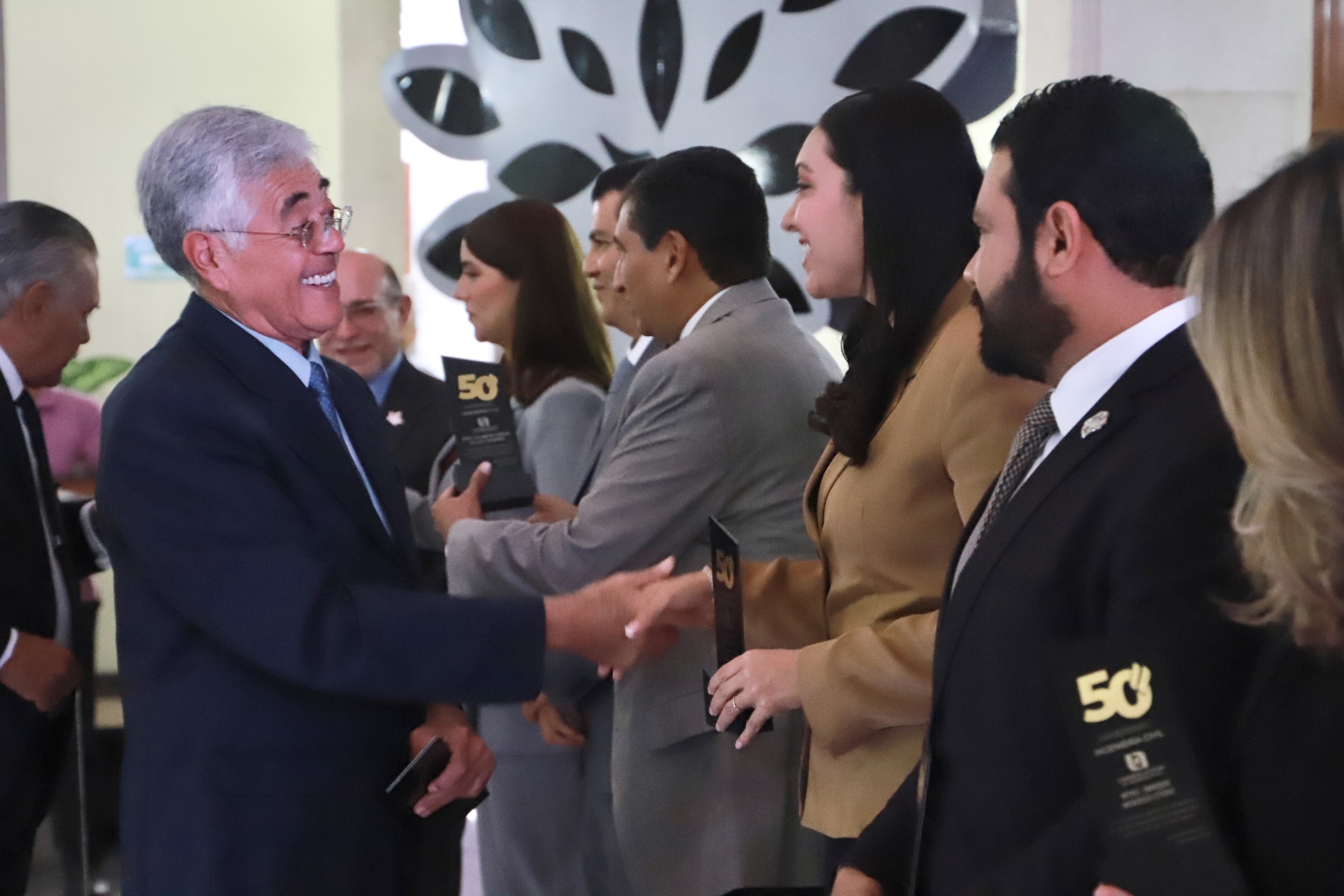- Se entregaron reconocimientos a cerca de 50 docentes y exmaestros que forjaron profesionistas comprometidos con el desarrollo ordenado de Aguascalientes.