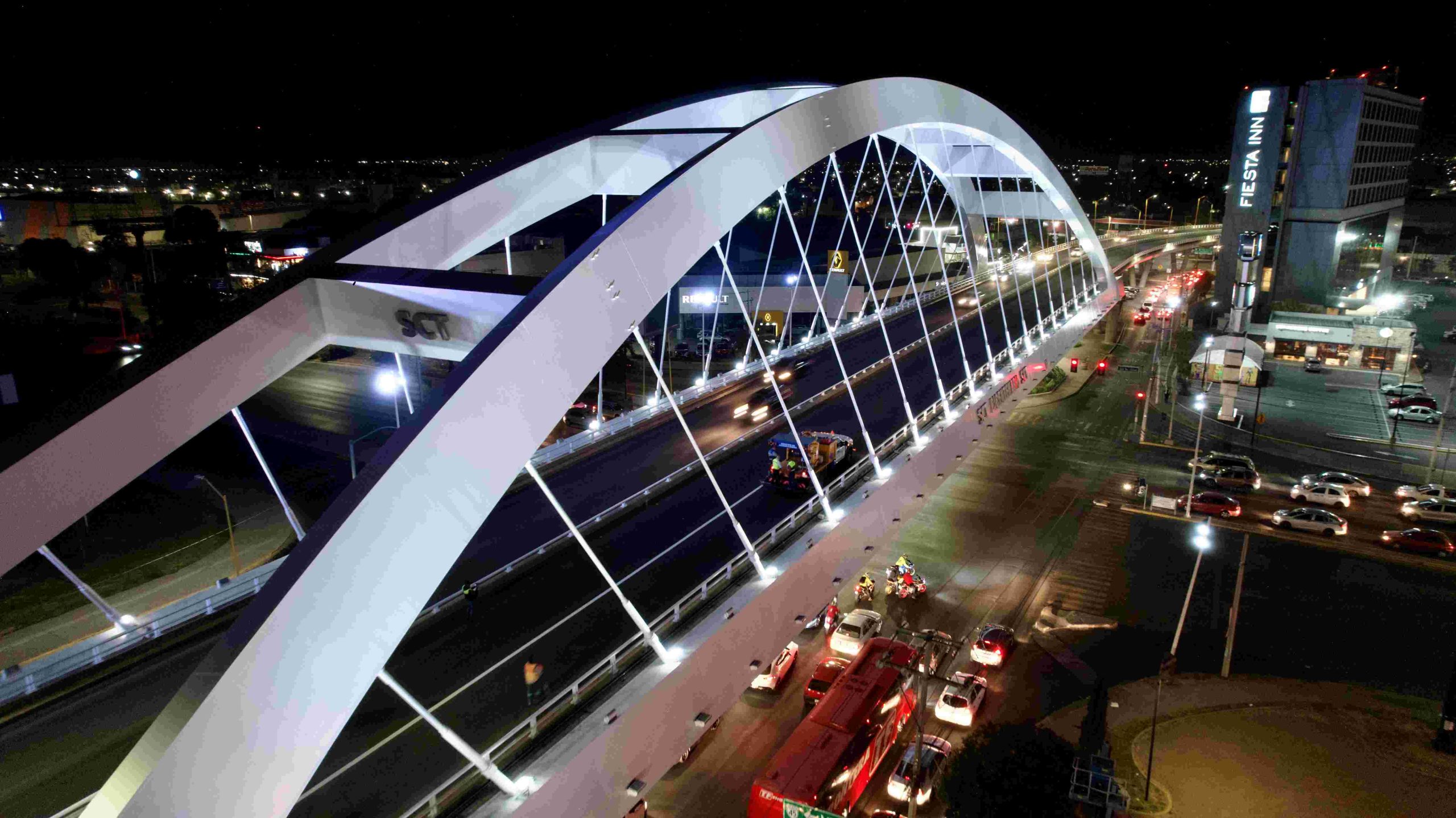 - La Secretaría de Obras Públicas Municipales realizó el mantenimiento de los 34 tirantes del puente, con lo que se asegura su estabilidad y funcionalidad