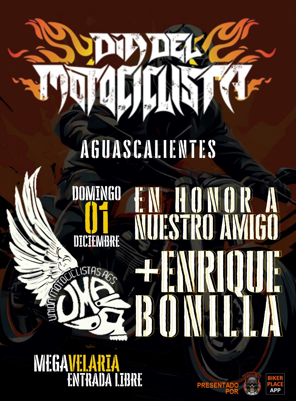 Rodrigo Cid, presidente de la Unión de Motociclistas de Aguascalientes (UMA) invita a la sociedad en general a unirse a los festejos por el Día del Motociclista que se celebra el primer domingo de diciembre y que en esta ocasión se llevará a cabo el domingo 1 de diciembre.