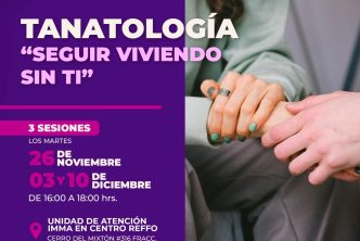 El Instituto Municipal de la Mujer de Aguascalientes (Imma), invita a la población que ha pasado por la pérdida de un ser querido, a participar en el curso de tanatología “Seguir viviendo sin ti” que se desarrollará en tres sesiones, diseñadas para acompañar de manera profesional y empática a quienes enfrentan la muerte, así como a sus seres queridos.