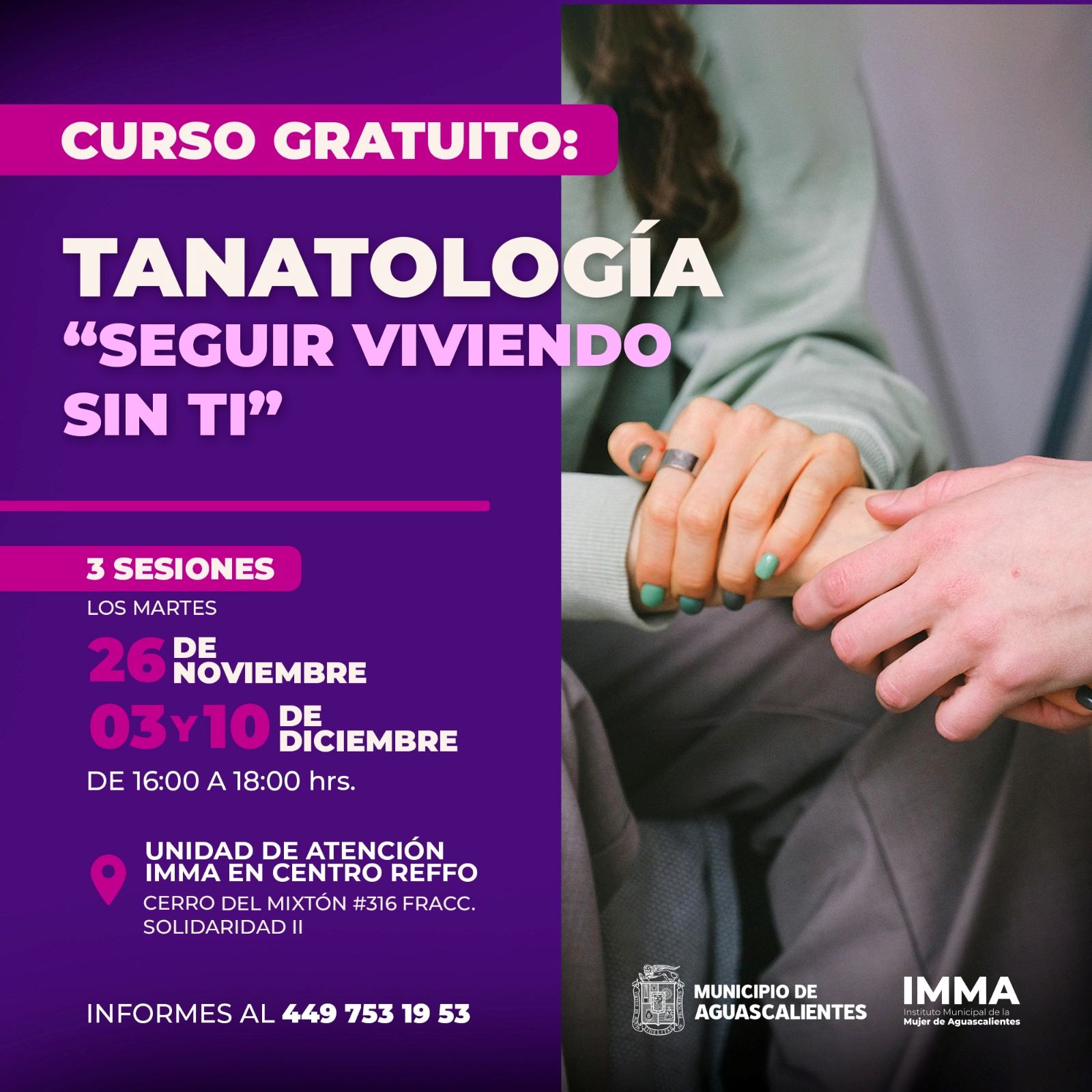 Para más información sobre este y otros programas de la institución se pueden consultar las redes sociales: https://www.facebook.com/IMMAAGS?mibextid=ZbWKwL o llamar a los teléfonos del Imma 449 753 19 53, 449 916 36 10 y 449 251 32 13.