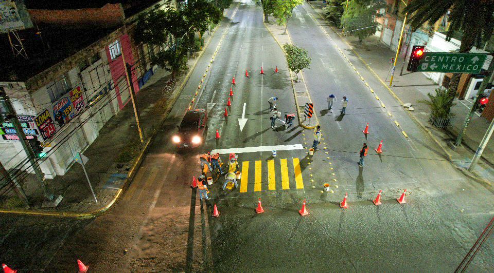 FORTALECE OBRAS PÚBLICAS MUNICIPALES TRABAJOS NOCTURNOS DE PINTURA EN VIALIDADES