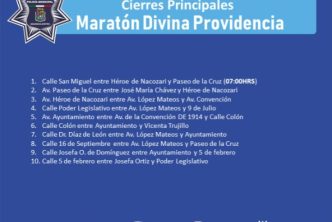 Los principales cierres a la circulación vehicular se realizarán en las calles San Miguel entre Héroe de Nacozari y Paseo de la Cruz, desde las 07:00 horas, Av. Paseo de la Cruz entre José María Chávez y Héroe de Nacozari, Av. Héroe de Nacozari entre Av. López Mateos y Av. Convención, Calle Poder Legislativo entre Av. López Mateos y 9 de Julio, Av. Ayuntamiento entre Av. de la Convención Sur y Calle Colón, Calle Colón entre Ayuntamiento y Vicenta Trujillo, Calle Dr. Díaz de León entre Av. López Mateos y Ayuntamiento, Calle 16 de Septiembre entre Av. López Mateos y Paseo de la Cruz, Calle Josefa O. de Domínguez entre Ayuntamiento y 5 de febrero y Calle 5 de febrero entre Josefa Ortiz y Poder Legislativo.