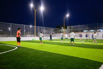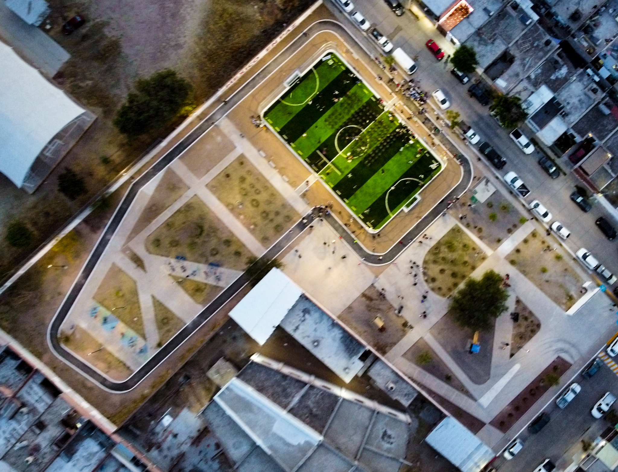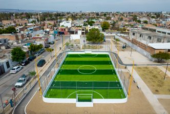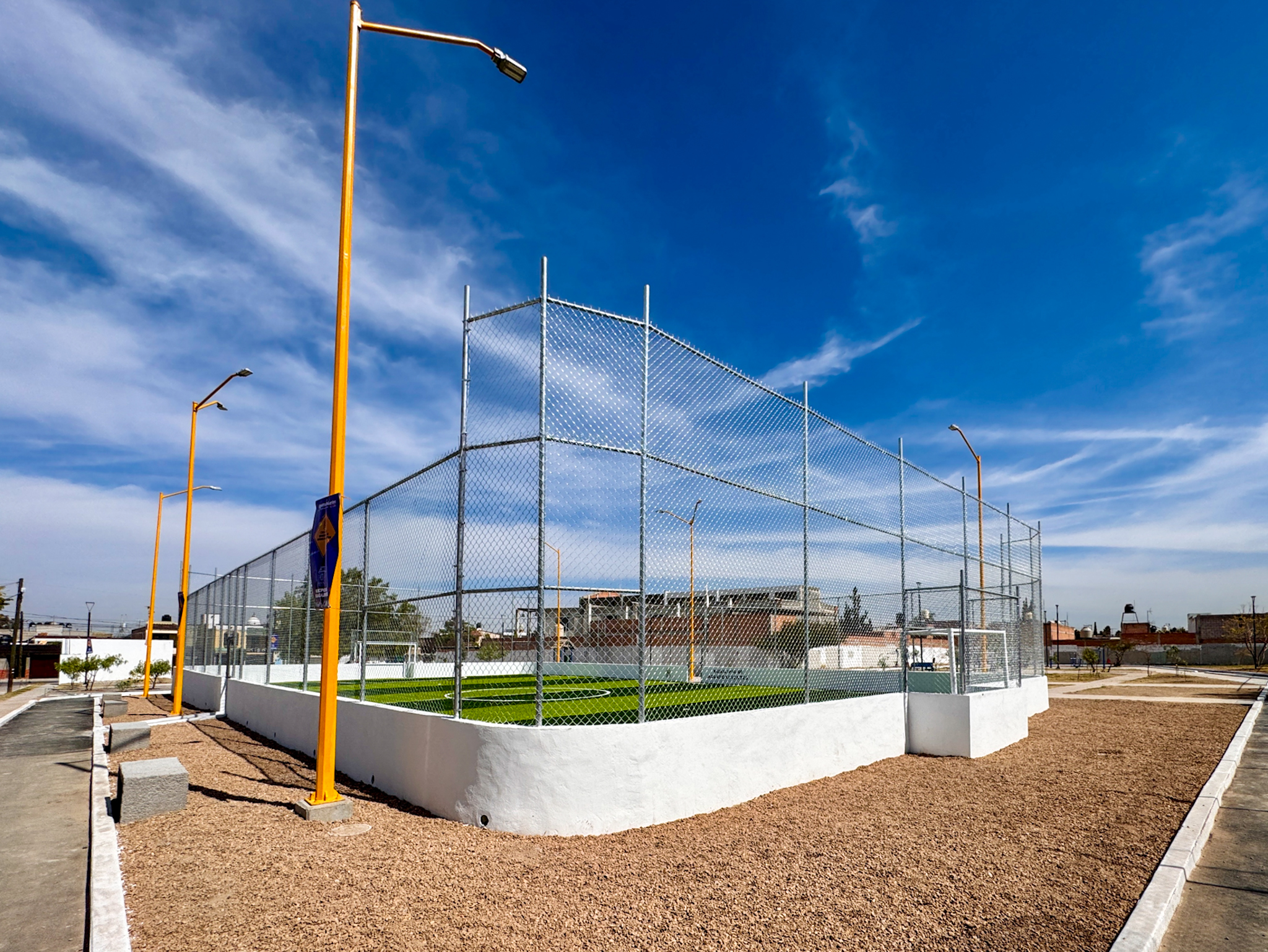 • Vecinos de Vistas del Sur disfrutan de la nueva cancha de pasto sintético en el parque Villas del Oeste.