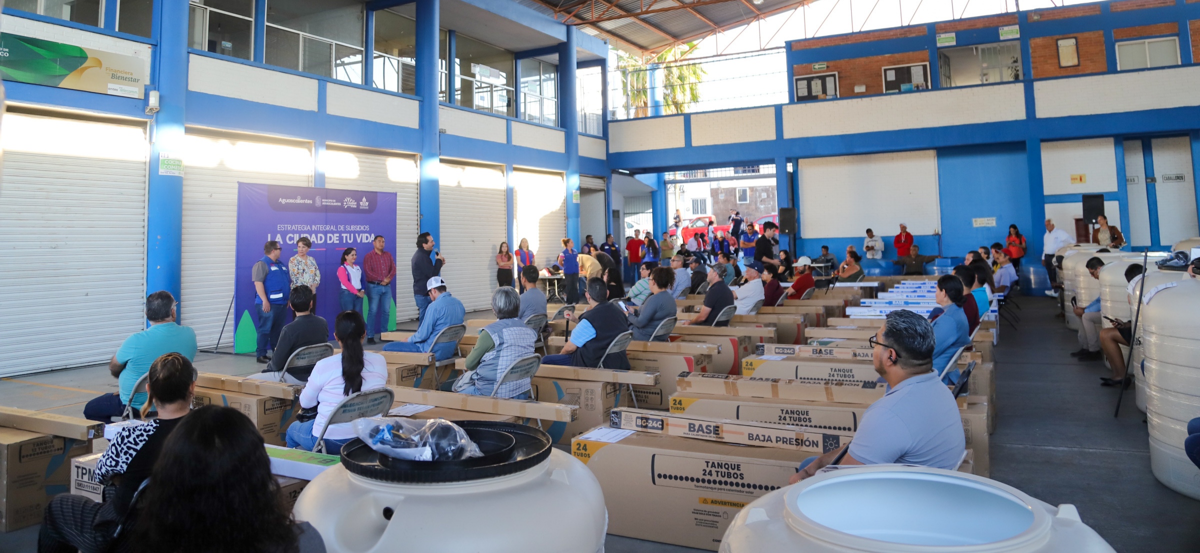 - Se llevó a cabo la entrega de tinacos, cisternas y calentadores solares en la Delegación Santa Anita.