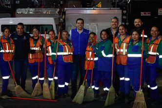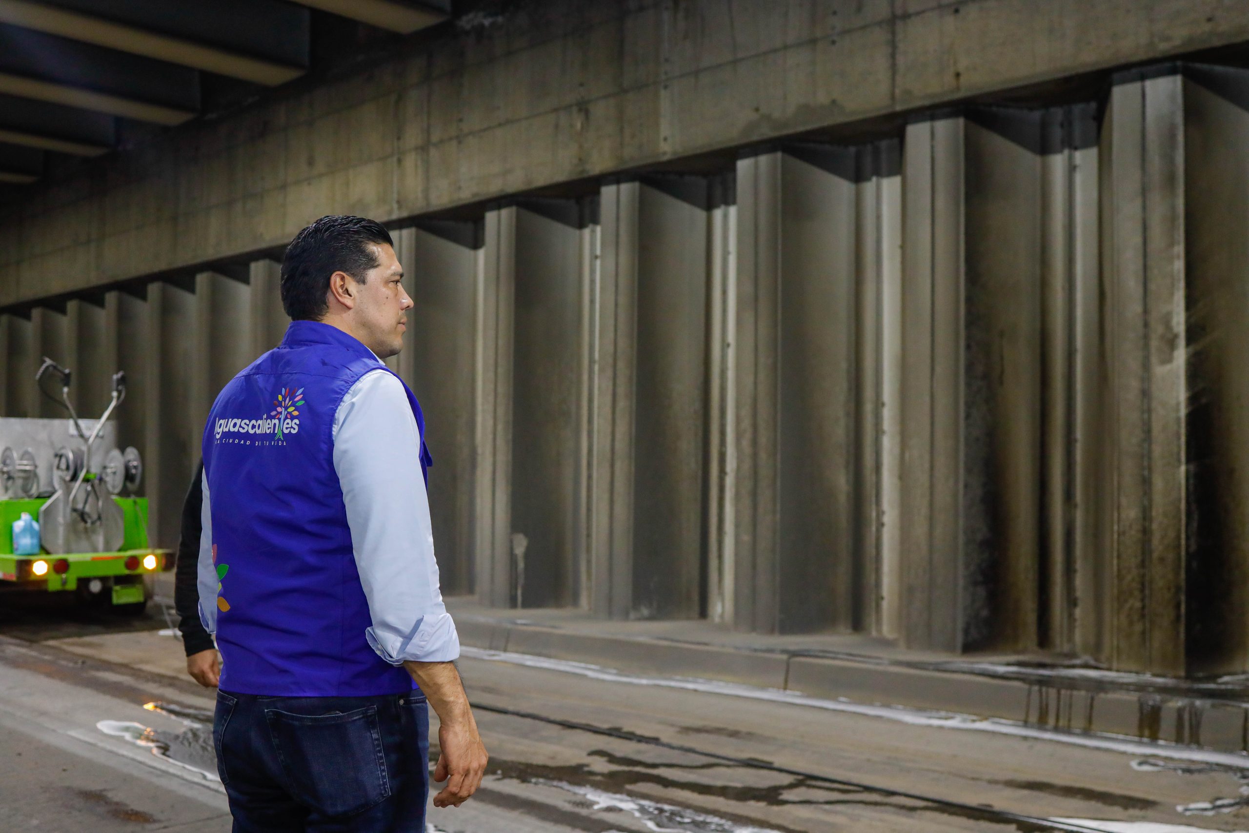El presidente municipal, Leo Montañez, encabezó un operativo nocturno de limpieza en el paso a desnivel de avenida de la Convención de 1914 poniente en su cruce con avenida Adolfo López Mateos.