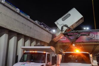 La Secretaría de Servicios Públicos Municipales sigue realizando jornadas de mantenimiento en bajopuentes, puentes y pasos a desnivel, con barrido y lavado profundo para eliminar residuos y objetos que puedan representar un riesgo para los conductores.