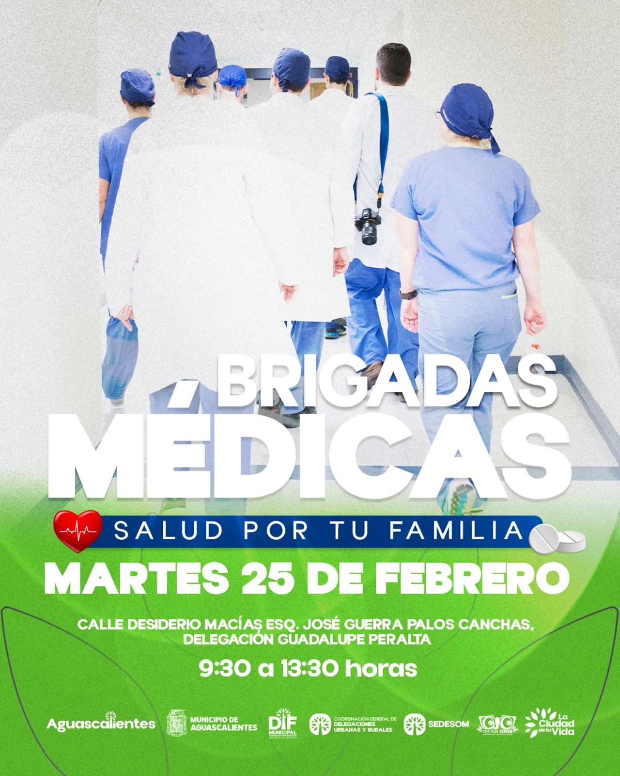 El DIF Municipal de Aguascalientes, en coordinación con la Secretaría de Desarrollo Social Municipal (Sedesom) y la Coordinación General de Delegaciones Urbanas y Rurales, invitan a la ciudadanía a aprovechar los servicios de salud gratuitos que se ofrecerán en las siguientes brigadas médicas: