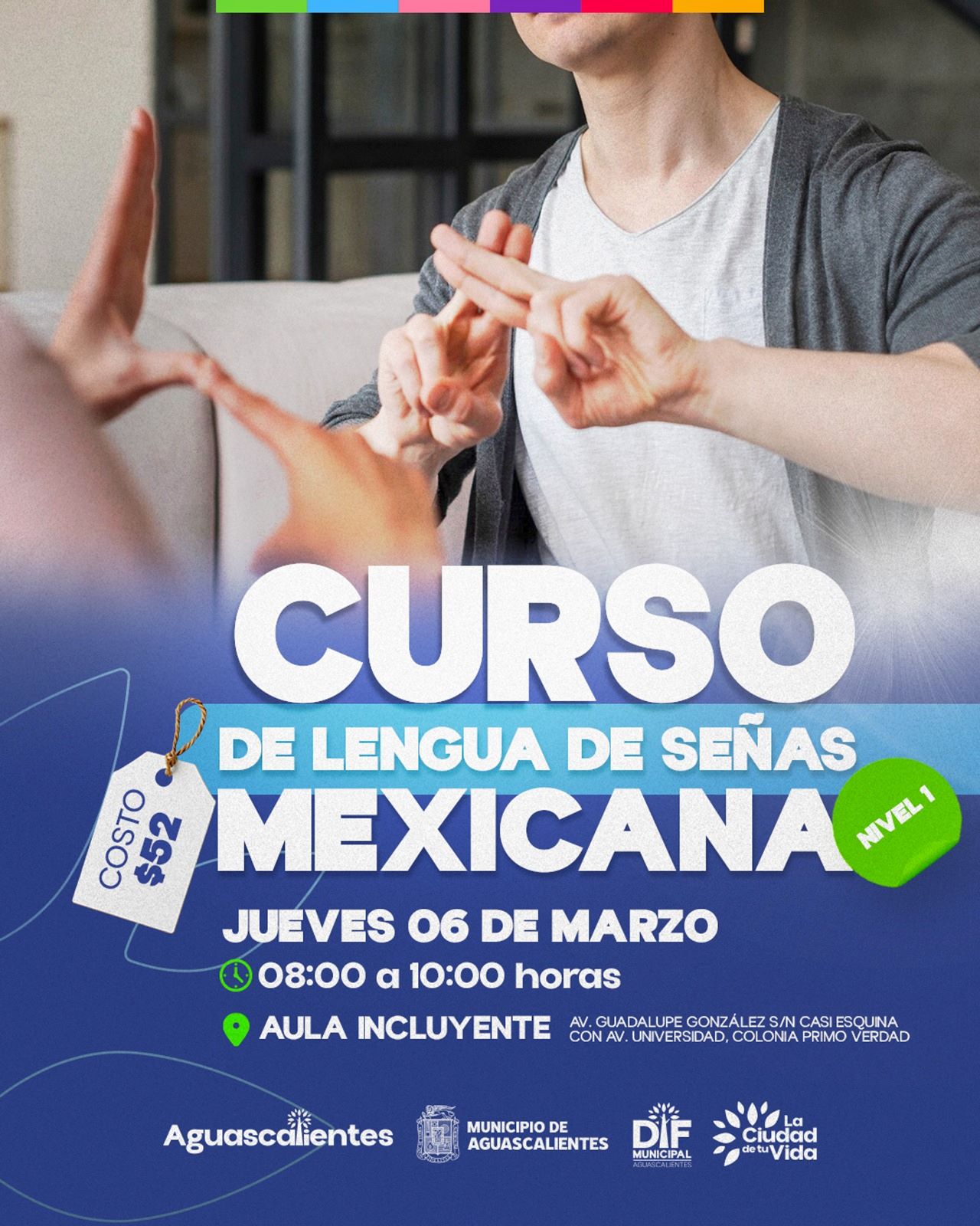 El DIF Municipal de Aguascalientes, a través del Departamento de Trabajo Social y el Área de Atención a Personas con Discapacidad, abre la convocatoria para el Curso Básico de Lengua de Señas Mexicana (LSM) los jueves, dirigido a personas interesadas en desarrollar habilidades de comunicación inclusiva.