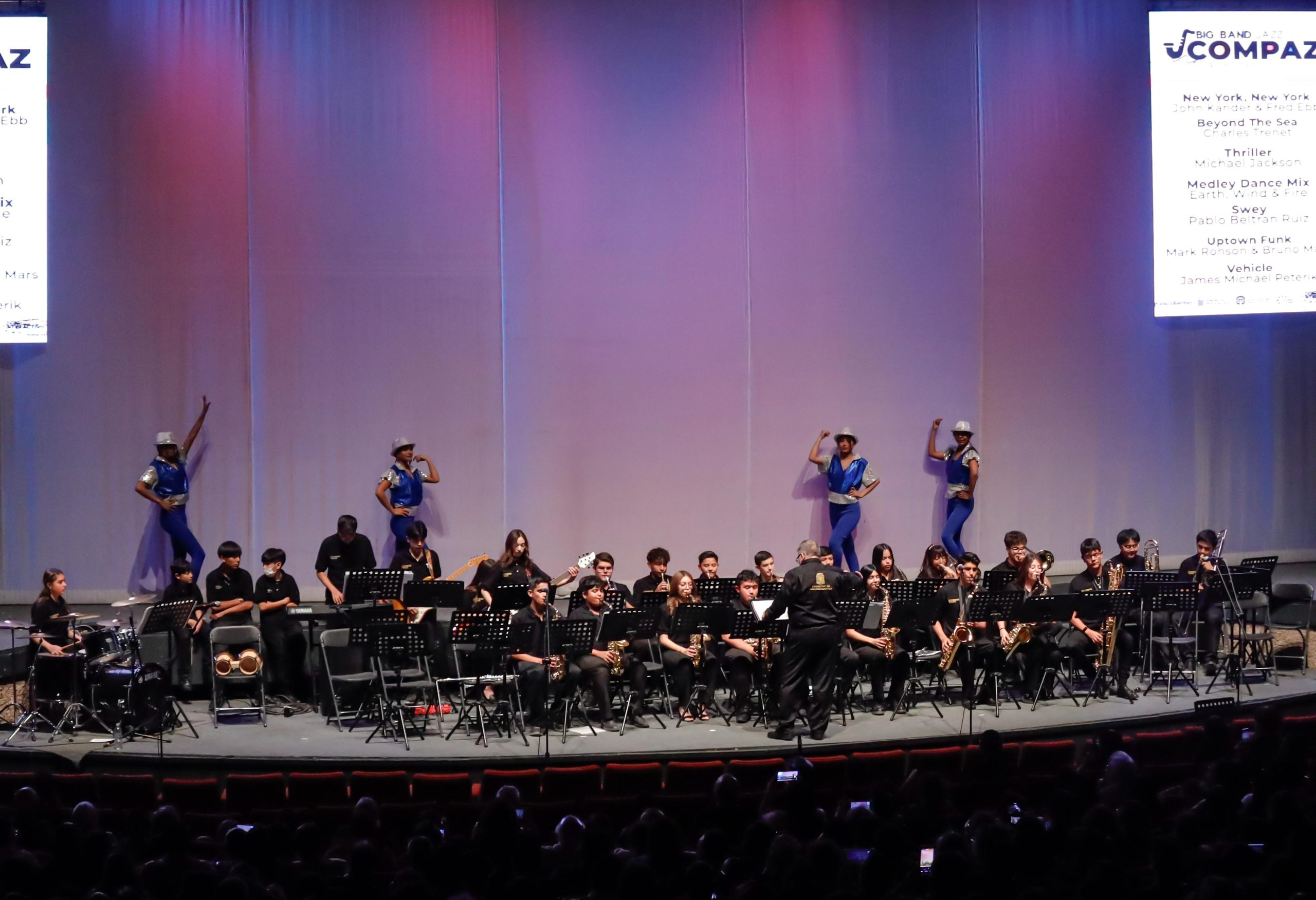El repertorio de este concierto fue interpretado por 120 niñas, niños y jóvenes que conforman los cinco ensambles de COMPÁZ: Banda Sinfónica, Big Band Jazz, Orquesta de Cámara, Coro y Orquesta Sinfónica.