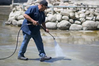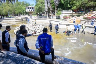 El presidente municipal, Leo Montañez, supervisó los trabajos de limpieza y rehabilitación del lago artificial del tradicional parque Miguel Hidalgo, ubicado en el barrio de La Purísima, mismos que se llevan a cabo con el objetivo de brindar a las familias espacios óptimos para la sana convivencia y recreación.