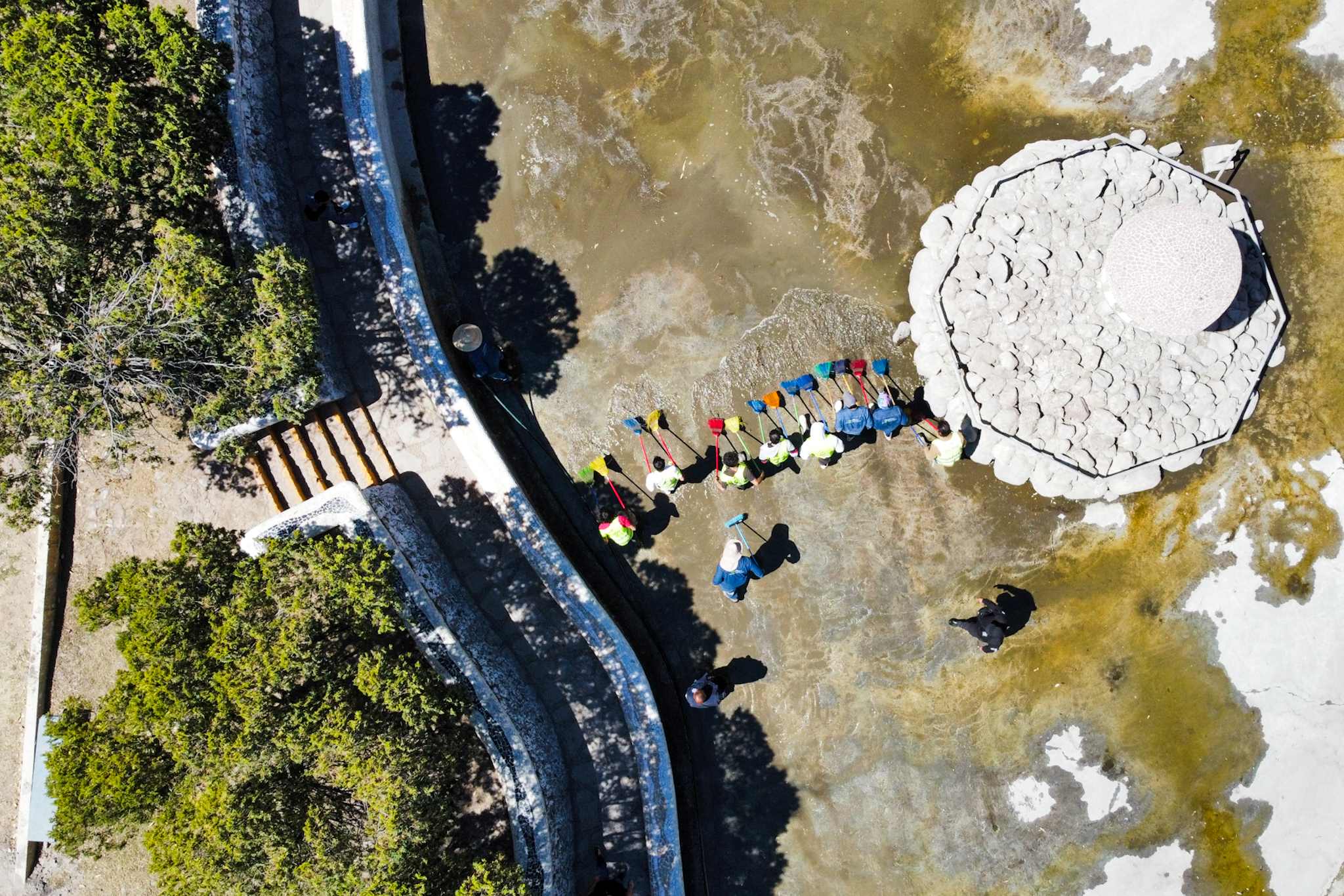 Cabe señalar que en este proyecto participan voluntarios del programa de Servicio Comunitario quienes conjuntan esfuerzos con personal de la Secretaría de Servicios Públicos para conservar este emblemático sitio.