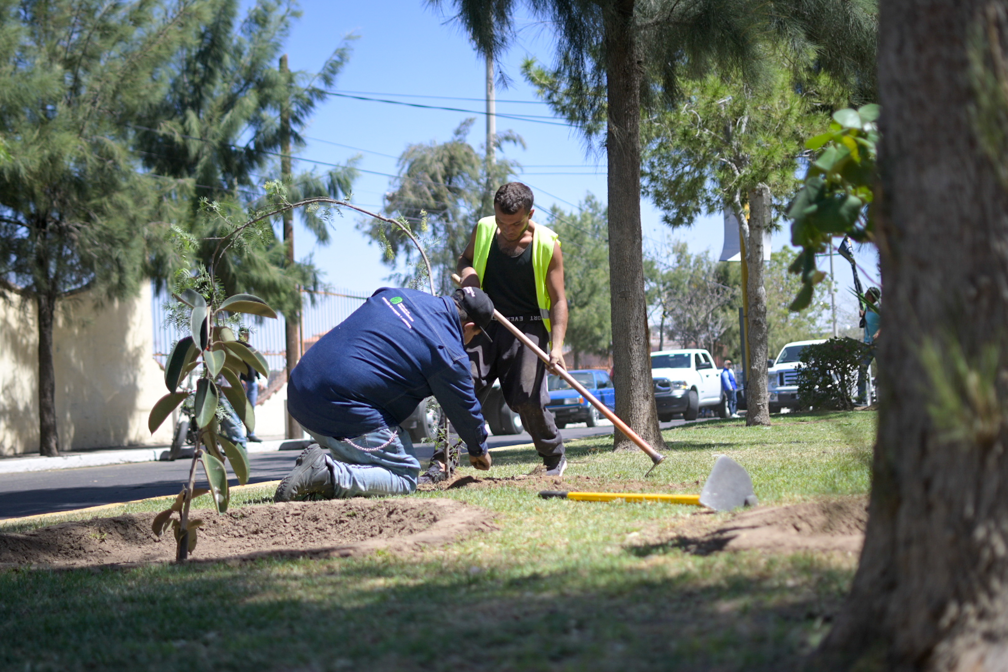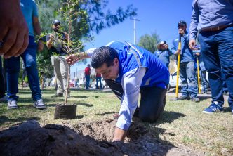 La mañana de este sábado, el presidente municipal, Leo Montañez encabezó los trabajos de forestación en el camellón de Ignacio T. Chávez en el tramo de calle Medellín y avenida de la Convención de 1914, donde se colocaron cerca de 300 especies vegetales entre bugambilias, pirul criollo, ceibas y olivo negro.