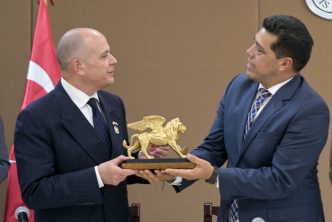 La tarde de este martes, el presidente municipal, Leo Montañez hizo entrega del reconocimiento “Visitante Distinguido” y del León de la heráldica de Aguascalientes que es equivalente a recibir las llaves de la ciudad, a Murat Salim Esnelli, embajador de la República de Turquía en México.