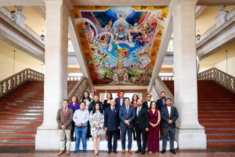 Finalmente, la comitiva integrada por Leslie Montserrat Mendoza Monterrosas, gerente de proyectos de cooperación de la Agencia Turca de Cooperación y Coordinación TIKA, integrantes del Cabildo de Aguascalientes, Mauricio González López, secretario de Turismo Estatal; María del Refugio Ramírez Castro, titular del Instituto Aguascalentense de las Personas Adultas Mayores y Arturo González Estrada, jefe de la Oficina Ejecutiva del Presidente Municipal, recorrieron las instalaciones de Palacio Municipal.