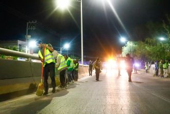 El presidente municipal, Leo Montañez encabezó el operativo de limpieza realizado en el puente y bajo puente de Av. Aguascalientes a la altura del fraccionamiento Parras, al oriente de la ciudad.