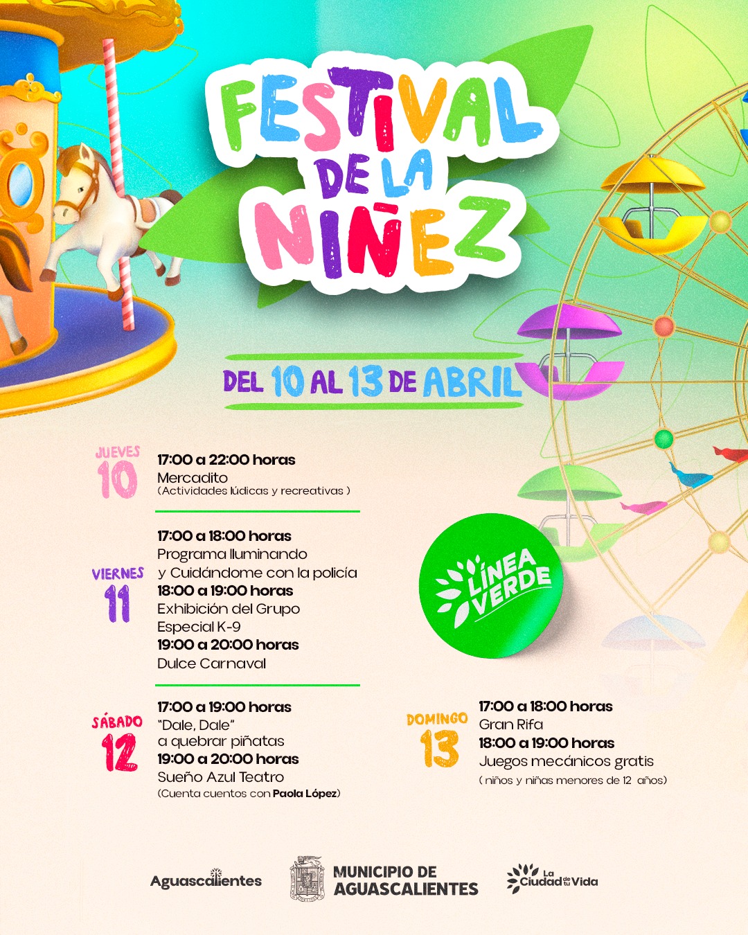 El Festival de la Niñez es una oportunidad única para que los niños y niñas se diviertan, aprendan y se relacionen en un ambiente seguro y lleno de alegría. El Instituto de Convivencia y Desarrollo Línea Verde está comprometido con el bienestar de la niñez y con la creación de espacios que fomenten el desarrollo integral de nuestros pequeños.