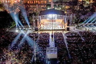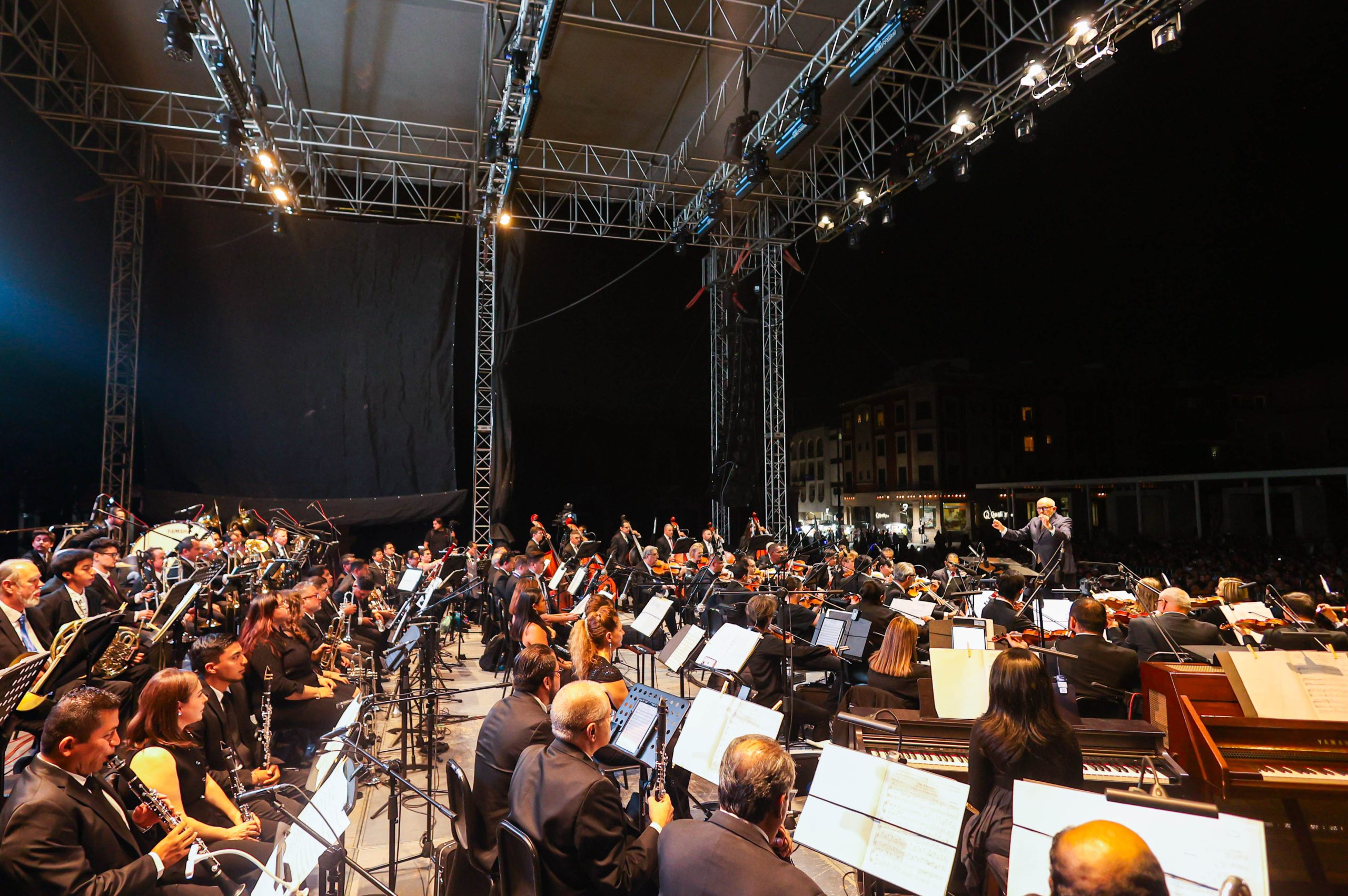 En la Exedra se presentaron por primera vez juntas en un gran ensamble sinfónico, la Orquesta Sinfónica de Aguascalientes y la Banda Sinfónica Municipal de Aguascalientes.